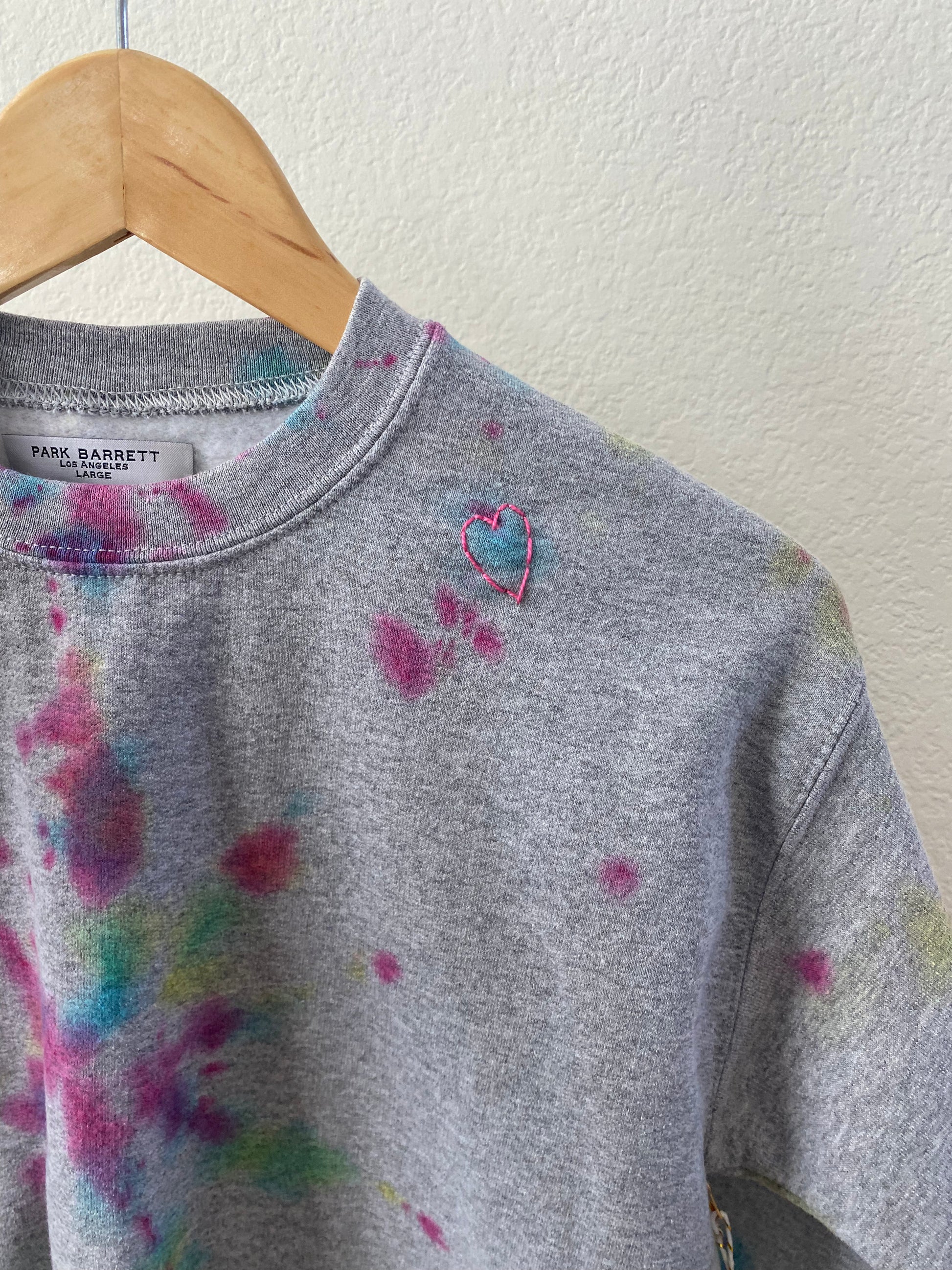 Kids Large Rainbow Tie dye with pink heart Embroidery